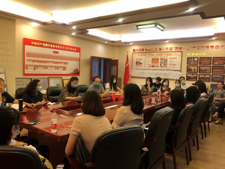 6月12日上午10时,梧桐楼一楼会议室,党总支书记王雁结合疫情以来全系党员教师团结一心,迎难而上,抓复学复课,为全系党员教师讲授了一堂生动的《“党在我心中”——我身边的战“疫”先锋》专题党课。王书记讲到: “疫情发生以来,党中央坚持全国一盘棋,集中统一领导全国疫情防控,迅速有效控制住了疫情在全国的蔓延之势,并积极向全世界分享抗疫经验、提供抗疫支持,充分体现了我们国家的制度优势;学校党委及时成立防疫工作领导小组,全方位协调领导全院防疫工作,确保了全院广大师生员工的生命健康安全;钢琴系广大党员教师积极响应号召,以身作则,在做好自身防疫,不给学校添乱,不给社会添乱的同时,积极投身线上教学复课,较好地完成了各项教学任务;各位辅导员和办公室人员密切关注学生动态,及时咨询、发布学校相关信息,虽相隔异地,对学生的关心关怀却从未停止。你们用实际行动践行了教师“教书育人”的神圣职责,用使命之心诠释了一名党员的责任和担当。”生动的讲授深深地激发了在场老师们的爱党爱国热情,增强了“四个意识”,坚定了“四个自信”,做到了“两个维护”。