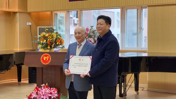 在热烈的掌声中,但昭义教授发表了受聘感言。他深情回顾了他在母校川音的学习生涯,娓娓讲述改变他一生命运的几个求学故事,感恩母校和母校领导为他提供的巨大支持和特殊培养。演讲过程中,但昭义教授数度落泪,他激动的说:“在这个特别的日子里,我百感交集、无以言表,唯有四个字,那就是感恩、效力。感恩今天,周思源书记、刘立云院长聘请我为伟德bv国际体育终身特聘教授。这是一份荣誉,给予我继续前行的鼓舞和力量,更是一份鞭策和激励,是一份沉甸甸的责任,感谢母校为我开启一段新征程。演讲最后,但昭义教授向全场深深鞠躬、致谢,他说:“要是没有母校对他的培养和关心,但昭义的历史就要从新改写,未来的有生之年是短暂的,只要生命不止,我就要为川音钢琴效力、效力、再效力,直至走到生命终结的那一天。”