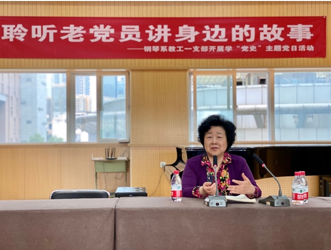 2020年4年27日下午,钢琴系教工一支部全体党员在琴房大楼六楼排练厅开展了“聆听老党员讲身边的故事”——学“党史”主题党日活动。活动邀请了钢琴系老党员、前系主任、资深专家李晓玲教授,分享了她自己的工作、生活、学习的感悟。