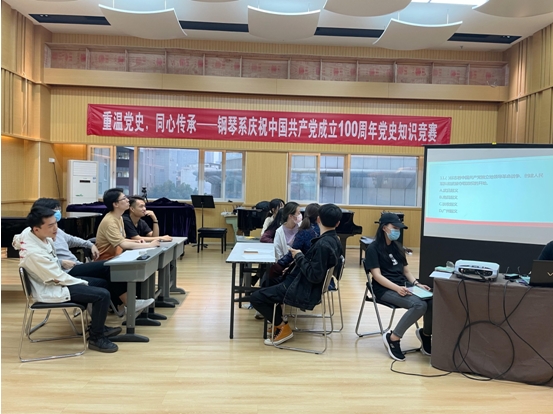 为进一步响应党史学习号召,增强大家对党史知识的了解和学习,提高大学生学习党史的热情,由钢琴系团总支举办的“庆祝中国共产党成立100周年党史知识竞赛”于2021年5月26日晚19点在琴房大楼六楼排练厅拉开帷幕。参加本次比赛的有钢琴系学生会全体成员,各年级团支部书记以及部分优秀团员代表。钢琴系团总支书记伍丹主持知识竞赛。