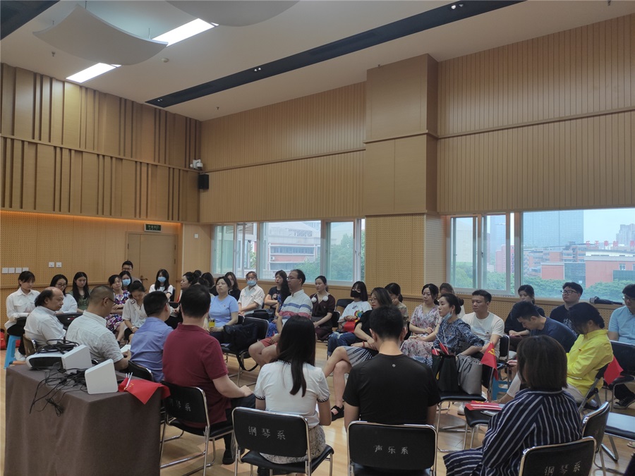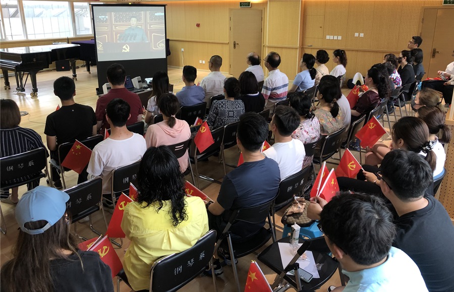 7月1日上午8点,庆祝中国共产党成立100周年大会在天安门广场隆重召开,中共中央总书记、国家主席、中央军委主席习近平发表了重要讲话。我系党总支组织全系党员师生及教师代表、学生干部代表共46人在琴房大楼六楼排练厅集中观看了大会直播,其余师生在教室、琴房、宿舍等地收看大会。