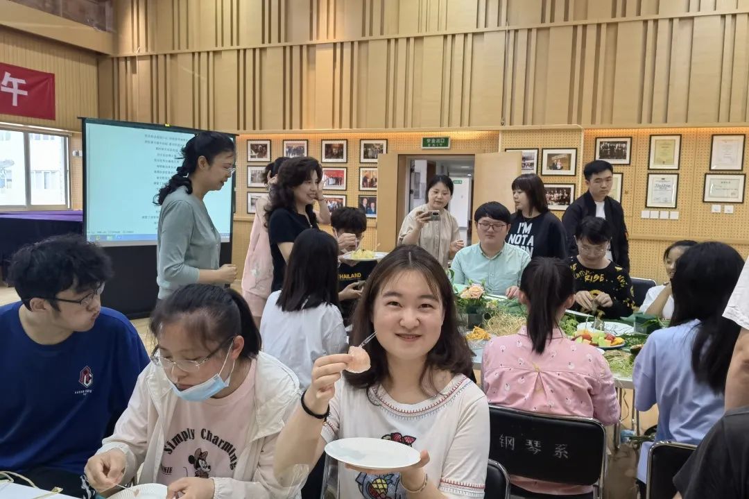参加活动的2021级学生范伊林表示,“今天是我过得最开心的一天,非常感谢学校领导和钢琴系老师们在节日里陪伴我们,让我们的内心感到非常温暖,因为你们的关心、关怀、关爱让我们度过了一个特别难忘的端午节,让我们感受到了家一般的温暖。”同学们一致表示,一定要加倍努力,不辜负学校的培养和期望,努力养德、增智、习艺,让青春在不懈奋斗中绚丽绽放。