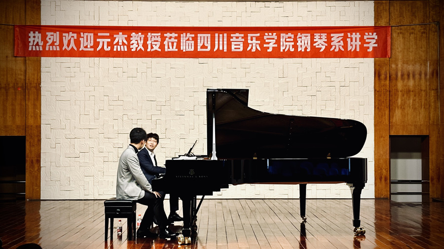 2022年11月2日,哈尔滨音乐学院钢琴系主任元杰教授在我院小音乐厅成功举办大师班讲学,对钢琴系三位附中学生进行了专业演奏指导。