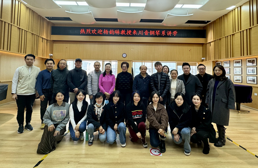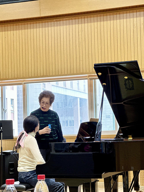 上海音乐学院钢琴系杨韵琳教授于11月15日在钢琴系进行了全天的大师班讲学,她对学生演奏的《彼得鲁什卡》、贝多芬《三十二变奏》、肖邦《平静行板与辉煌的大波兰舞曲》等曲目进行了非常透彻的分析和讲解,重点讲述了音乐风格、不同触键方式、句子的连贯性、声音的层次等等。