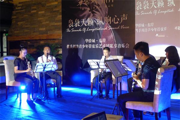 2014年8月31日,受成都市华侨城地产的邀请,伟德bv国际体育管弦系教师张庭愷在成都市华侨城·东岸艺术厅作《单簧管演奏艺术》的专题讲座,并在讲座结束后,举行了一场别开生面的师生重奏、独奏单簧管音乐会。 在讲座中,张庭愷老师首先从单簧管这件乐器的历史开始,随后介绍了单簧管在浪漫主义音乐时期的极大发展,以及近现代与未来单簧管演奏艺术的发展趋势。同时,还向听众们介绍了张庭愷老师最新的科研成果——系统化的单簧管演奏技术与教学模式。 在接下来名为“袅袅天籁,纵响心声”的重奏、独奏音乐会中,张庭愷和他的学生们一块儿演奏了由他本人改编的《仙女琪琪组曲》,以及弗朗赛《单簧管协奏曲》、《竞赛》、《越吹越小》、《窗花舞》等中外名曲。音乐会获得了巨大成功和热烈好评!