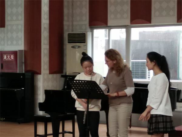 克拉拉诺娃科娃(Clara Novakova),著名长笛演奏家,教育家,生于捷克的布尔诺的音乐家庭。她是世界著名现代派作曲家Jan Novak先生的次女。师从Klaus Schochow后转入法国巴黎国立音乐学院,师从Michel Debost。    这次她来到伟德bv国际体育管弦系举办大师班和自己的音乐会,在音乐会上为各长笛专业人士介绍幷演奏了她父亲创作的音乐作品,幷与伟德bv国际体育朱骥教授一同演奏了长笛二重奏,让大家受益匪浅。 在克拉拉诺娃科娃的大师班上,同学们专注聆听,并且学习到更多练习长笛,练习气息的多种方法,同学们和老师的配合让这次国内外的交流学习画上了完美的句号。