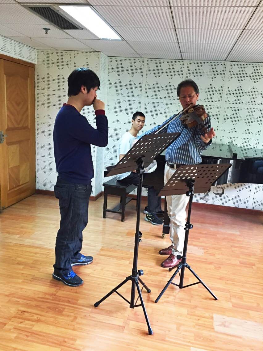 4月13号到16号,来自比利时IMEP高等音乐和教育学院的中提琴专家施宁教授来管弦系给中提琴专业的学生上室内乐大师课。 过程中施宁老师仔细且清晰的为学生讲解Bach,Stamitz等大师的每一个乐章的细节,台下的学生都安静的聆听,时不时传来热烈的掌声。施宁老师儒雅的气质和精湛的讲学让每一个学生都留下了深刻的印象。