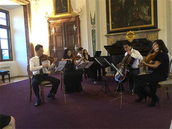 2015年7月25日至8月9日,在管弦系主任李开祥教授的带领和组织下,我系青年教师李倩、刘璐璐、赵明玮,小提琴艺术研究院青彦言、川音交响乐团张丽佳几位老师以及我系研究生、本科、附中学生一行22人参加了捷克布拉格2015 年第22届AMEROPA音乐节。音乐节期间进行了大师班课、室内乐教学,老师和同学们排练、演出了室内乐及交响乐作品音乐会,演出获得强烈反响和一致好评。
