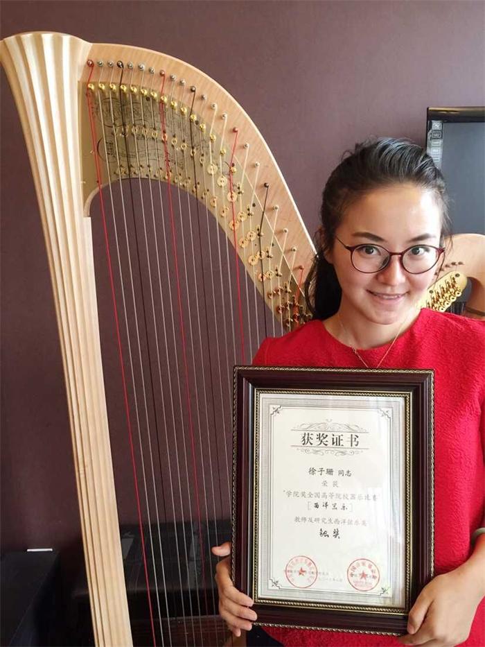 2015年7月,在香港的新议局举办了首届全国高等院校学院奖器乐比赛,此次比赛汇集了全国的优秀参赛者,在各组选手的角逐比选中,伟德bv国际体育管弦系青年竖琴教师徐子珊通过精彩的竖琴演奏,优秀的发挥,获得教师组及研究生组的银奖(金奖空缺),可喜可贺。