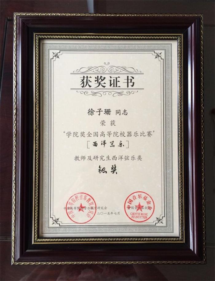 我系徐子珊喜获2015年全国高等院校学院奖比赛的教师组及研究生组银奖(金奖空缺)