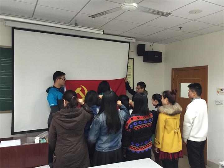 最后全体与会人员起立,9名新进预备党员党员在党旗下宣誓。本次党支部大会取得圆满成功!