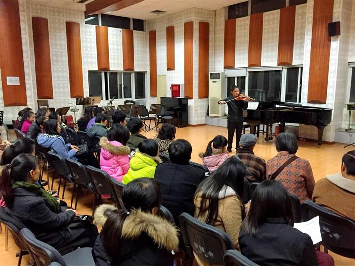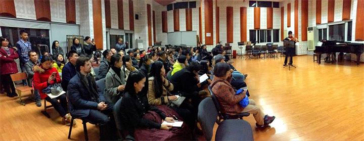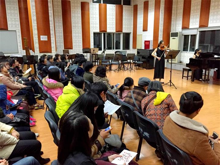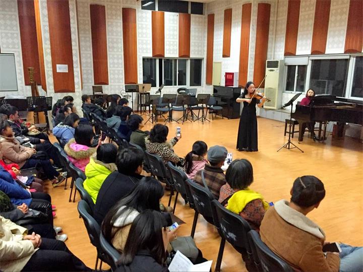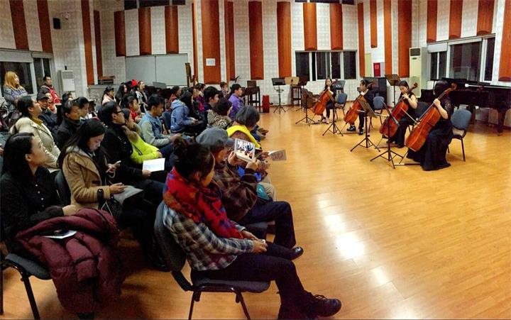 2015年12月15日在这个寒冷的夜晚,第六届管弦系“弦乐之夜”音乐会在琴房大楼四楼排练厅开始了。主持人由学生庞湃担任,条理清晰声音洪亮,为音乐会迎来了良好的开场。 本场管弦系“弦乐之夜”音乐会在期待和焦急的等待中开始了。音乐会分上下半场进行,第一个上场的是李嘉云滔同学,他准备的十分充分,表现很稳定,让场下的同学躁动的心顿时安静下来,获得了老师的一致好评。 音乐会在继续,吴思雨,李根,洪婷婷,赵培楠,王书意,杨雨等同学在上半场音乐会中都有出色表现,台下的同学和老师都沉浸在他们优美的音乐中。下半场音乐会同样由李嘉云滔同学开始,之后的应颖佳,姜辰美,钱琳,无灵灵,周林可同学的表现同样令人惊艳,音乐会的最后是由卢昱璇,盖博文,许秀敏,田俊玮组成的大提琴四重奏其优美旋律让许多观众都起立观看,把音乐会推向了高潮,更为本场音乐会画上了一个完美的句号。 这个圣诞节前的夜晚天气虽然寒冷,但同学们的内心是火热的。本次“弦乐之夜”音乐会取得圆满成功。