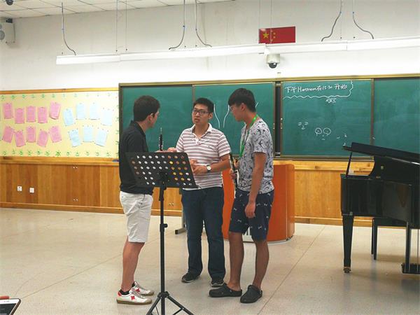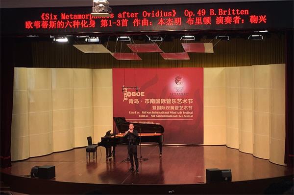 2017年7月19日至23日,由我系双簧管教授杨华玉老师带队,青年教师鞠兴、穆歌老师携学生受邀参加了青岛市南国际双簧管艺术节。此次艺术节由中央音乐学院、中国音乐家协会管乐学会、青岛市文化广电新闻出版局、青岛市市南区人民政府主办,是我国双簧管界举办的第三届国际性艺术节,为期一周的艺术节盛会有来自德国、法国、英国、意大利以及美国等十余位世界著名双簧管演奏家开办的大师班讲座及独奏、重奏音乐会,从全国各地赶来的近千名双簧管师生济济一堂,聆听、学习着大师们带来的美妙音乐和精彩讲解。 艺术节期间,杨华玉教授代表我系双簧管专业师生与国内外专家热烈交流、积极探讨学术话题和互访计划,为双簧管专业谋划未来。另外值得一提的是,我系鞠兴老师和穆歌老师在开幕式当天举办的“中国青年演奏家音乐会”上登台演奏,鞠兴老师演奏的是布里顿双簧管独奏曲;穆歌老师与杭州爱乐乐团双簧管首席段练一同演奏了肖斯塔科维奇的重奏曲,两位老师的演出非常成功,受到观众们一致好评,为伟德bv国际体育双簧管教师团队赢得了赞誉!