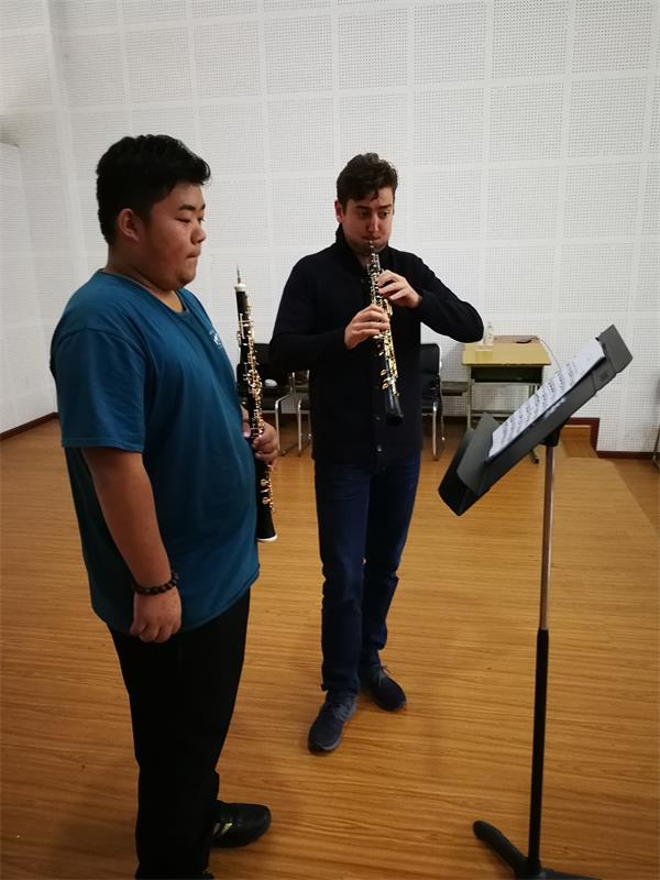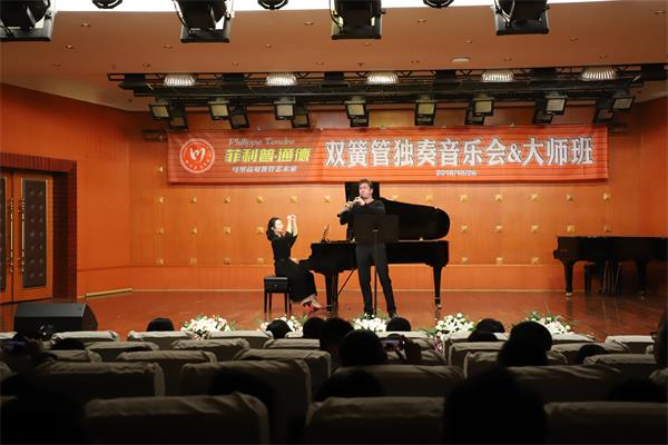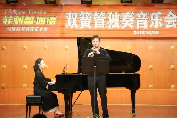 著名双簧管演奏家、德国SWR广播交响乐团首席,德国萨尔布吕肯音乐学院双簧管教授菲利普.通德P hilippe Tondre于2018年10月25-26日来访我系。 期间通德教授为我系多名双簧管专业学生讲授了专家课并于26日晚在川音星海音乐厅与我系钢琴教师李秋薇共同举办了音乐会,他的音乐融合了敏锐的情感以及精湛的技巧,他对音乐的表现力及对声音色彩的把控将他与听众紧密连接,这也为他带来了大量赞誉,在场师生们反响热烈,持续了两小时的独奏音乐会取得了巨大成功。
