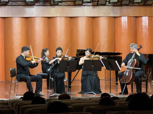 5月22日,我国著名单簧管演奏家、教育家,浙江音乐学院管弦系主任董徳君教授,浙江音乐学院外籍大提琴专家Alexander Suleiman(苏莱曼)教授在管弦系讲学。二位教授与浙江音乐学院一行共13名教师于5月23日在学院聂耳音乐厅举办了专场交流音乐会。