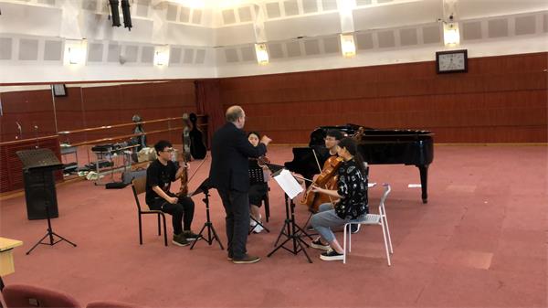 川音“云雀”四重奏组受邀于2019年5月31日至6月5日,参加在上海音乐学院举办的第一届国际室内乐音乐节,期间于6月3日在上音排演中心接受欧洲室内乐联盟学院导师,哥本哈根皇家音乐学院中提琴教授提姆•费雷得里克森大师课指导斯美塔纳e小调第一弦乐四重奏第一乐章,6月5日在上音室内乐排练厅接受香港演艺学院小提琴教授陈浩堂大师课指导斯美塔纳e小调弦乐四重奏第三乐章。 音乐节期间重奏组全体成员魏子童,胡玥,庞湃,谢松洋及指导教师夏飞集体观摩了来自维也纳艺术大学,中央音乐学院,上海音乐学院,中国音乐学院,香港演艺学院,沈阳音乐学院以及哈尔滨音乐学院等专业院校的弦乐四重奏,钢琴三重奏,钢琴四重奏等多类室内乐组合形式的大师课,晚间则聆听了新魄力四重奏,维特鲁威三重奏,琥珀四重奏,汉四重奏,友人室内乐社,西安四重奏等国际国内知名室内乐重奏组的专场音乐会以及闭幕音乐会中音乐节授课大师们的精彩演奏。 通过这次室内乐音乐节的观摩学习,让重奏组成员充分感受了世界顶尖室内乐演奏水准的高度,纵向了解了国际国内室内乐发展水平的现状,在一定程度上建立和提升了对室内乐演奏高规格技巧及审美的认知,为以后四重奏组的提高和发展指引了方向。