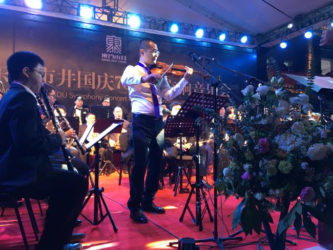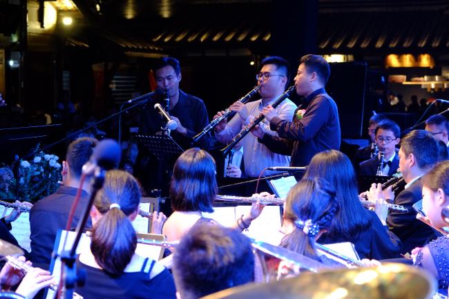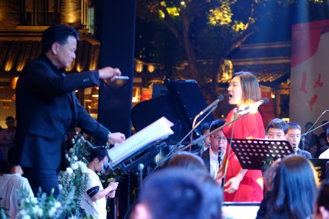 10月1日晚,在成都东门市井举行的“国庆70周年公益交响音乐会”中,伟德bv国际体育管弦系、现代器乐系优秀的老师们、大学生们,与四川青少年交响管乐团,共计近100名演出人员,在良宵佳节之际,共同为当晚现场近3000名观众献上了一场精彩激动人心的音乐会盛宴。 该活动由成都市锦江区人民政府、伟德bv国际体育管弦系、四川青少年交响管乐团共同策划举办,意在通过在向“祖国70周年华诞”献礼之际,展现伟德bv国际体育师生及成都青少年音乐学子们积极向上的精神风貌和精湛的专业水平,同时以此活动为普及高雅艺术,推动青少年音乐教育事业发展做出贡献。