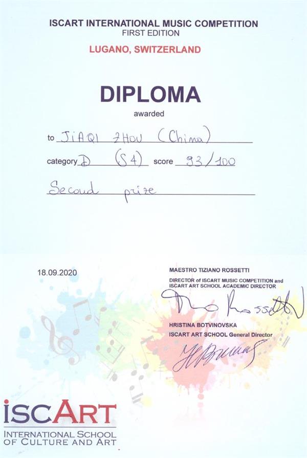 在刚刚过去的9月 我院管弦系1位单簧管专业同学及3位附中同学在瑞士伊斯卡特国际音乐比赛中获得优秀的成绩,他们是: 周佳琪 (本科二年级) 木管D组 二等奖 刘浩儒(附中高三)木管C组 一等奖 辛恬(附中初二)木管A组 二等奖 张婉然(附中初二)木管A组 一等奖 瑞士伊斯卡特国际音乐比赛始于2020年,本届为首届。比赛项目有钢琴、弦乐、吉他和竖琴、管乐、打击乐、室内乐、歌剧,主办方为卢加诺伊斯卡特国际文化和音乐学校。第一届比赛就收到了全世界102位申请者的热情参与,他们来自中国、保加利亚、西班牙、意大利、英国、韩国、波兰、俄罗斯、希腊、荷兰、克罗地亚、塞尔维亚、乌克兰、日本、南非、捷克、葡萄牙、斯洛维尼亚。 4位同学均师从于伟德bv国际体育管弦系青年单簧管教师孙震。
