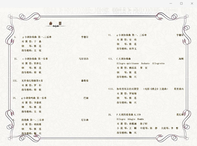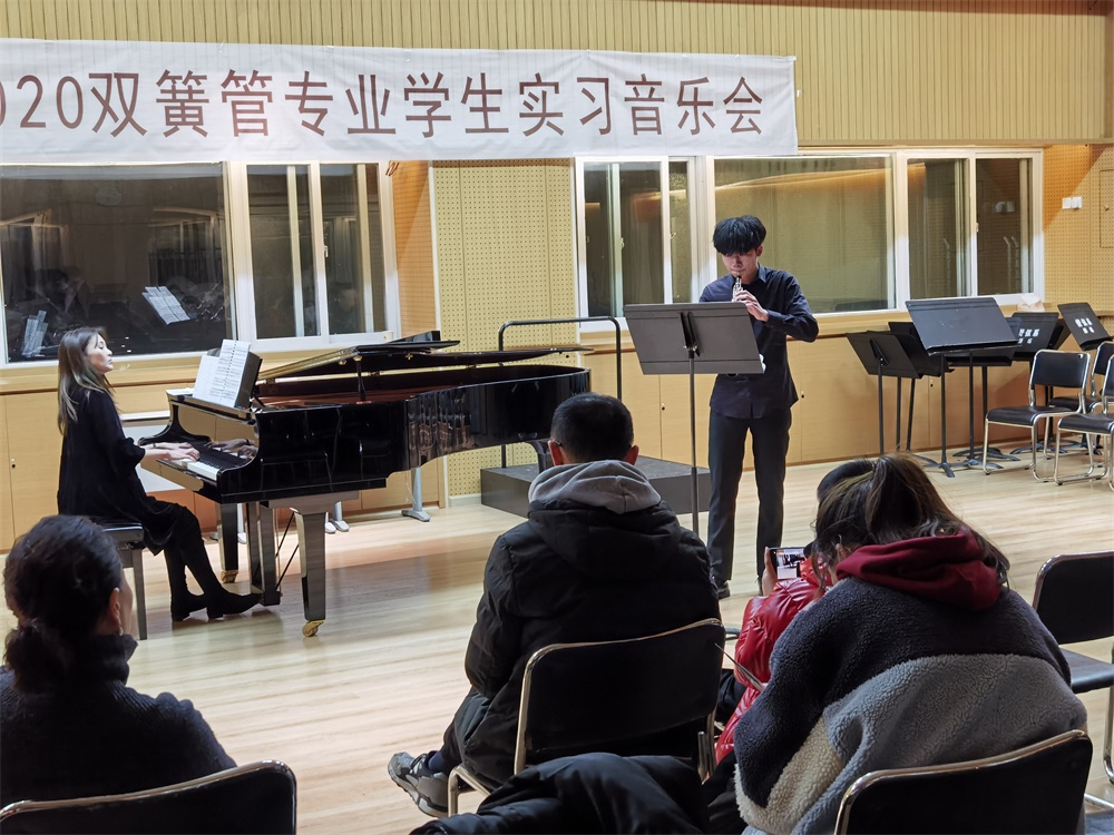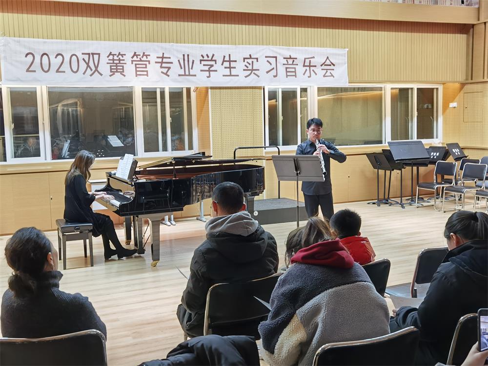 2020年12月16日我系在琴房大楼四楼排练厅举办了“2020双簧管专业学生实习音乐会”。 参与本次音乐会的学生涵盖附中和本科,演奏曲目囊括了巴洛克、古典、浪漫以及现代时期的经典作品。 音乐会获得师生一致好评,为学生们增强艺术实践能力提供了很好的平台。