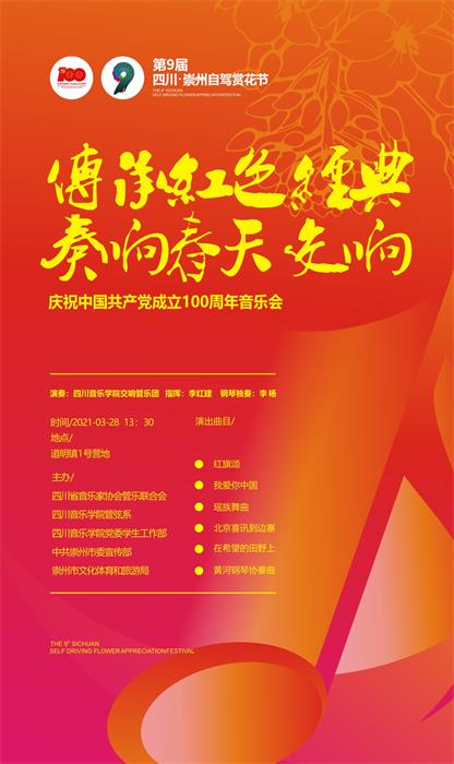 3月28日,在中共崇州市委宣传部,崇州市文旅局的邀请下,在崇州道明竹艺村,在美丽的田野间成功奏响了一场“传承红色经典,奏响春天交响”音乐会,用实际行动为庆祝中国共产党成立100周年献礼,同时将以更多的形式,为乡村文化建设,人文精神建设作出贡献。