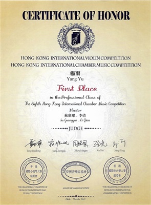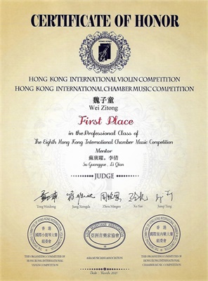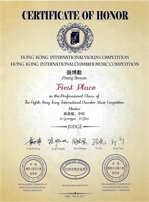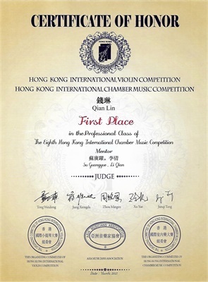 第七届香港国际室内乐大赛由亚洲音乐家协会(AMA)主办。大赛旨在为室内乐演奏家搭建一个展示协作演奏艺术的舞台,从而促进室内乐艺术的交流、发展和提高。大赛评委来自中国、美国、加拿大、韩国、澳大利亚、新加坡的杰出演奏家。在本届比赛中,管弦系学生获得优异成绩,向钱琳、魏子童、杨雨、张博勋同学以及指导教师李倩老师、苏广跃老师表示热烈祝贺!