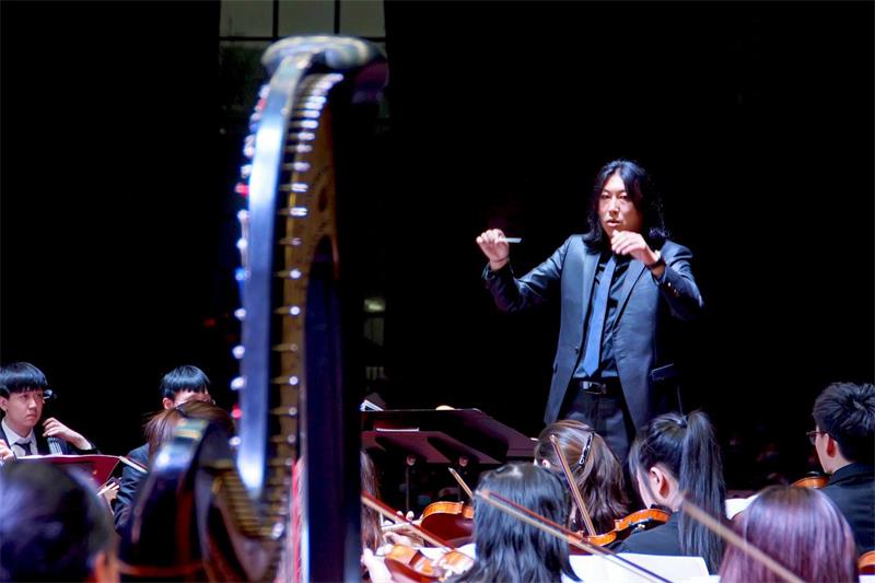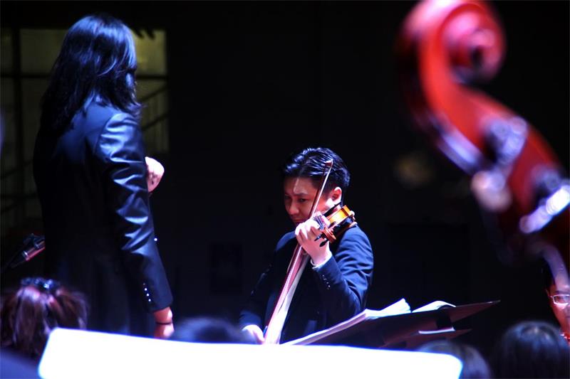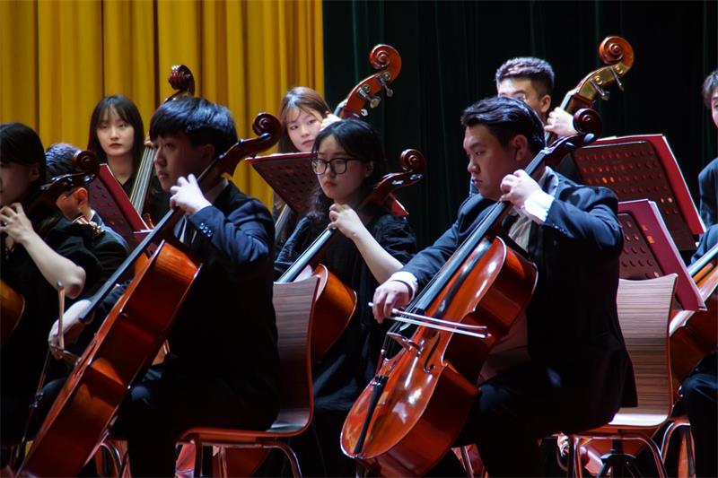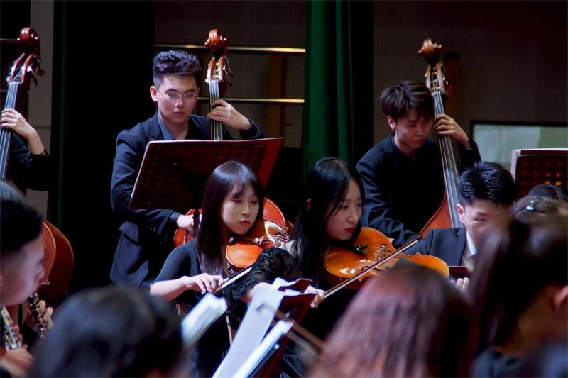 音乐会在气势宏伟的《红旗颂》中拉开了帷幕,经典的红色歌曲真实记录了中国人民站起来的历史情景,深情回顾了为新中国成立而英勇献身的无数革命先烈。小提琴协奏曲《梁山伯与祝英台》的优美旋律叙述了梁祝凄美的爱情故事,现场师生无不动容。《茉莉花》的演奏引起了现场师生的共鸣,简洁优美的曲调表达了对未来生活的期盼。下半场的《红色娘子军》组曲选段展现了娘子军在战争年代的艰苦环境中积极乐观、英勇无畏的精神。在音乐会的最后,在场师生齐唱《没有共产党就没有新中国》,将音乐会气氛推向高潮,共同为祖国的繁荣昌盛而感到自豪。