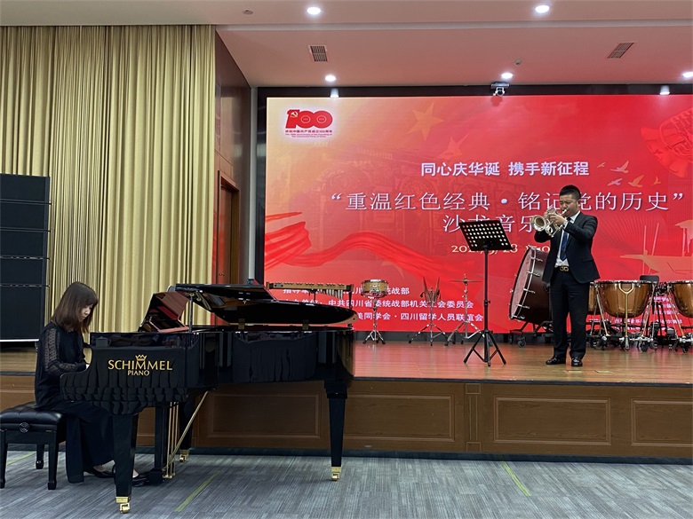 为庆祝中国共产党成立100周年,讴歌百年光辉历程,进一步深化党史学习教育和思想政治引领,引导广大归国留学人员弘扬优良传统、贡献智慧力量,5月28日,在省委统战部指导下,伟德bv国际体育管弦系具体承办的“重温红色经典·铭记党的历史”沙龙音乐会成功举办。省委统战部常务副部长钟家霖等部领导出席沙龙音乐会。