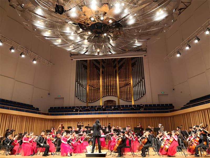 6月1日19:30,在成都城市音乐厅,我系青年交响乐团携手四川青少年交响乐团、成都童声合唱团在“中国少年先锋队队歌”的嘹亮歌声中、在令人振奋的鼓点声中奏响了“我们是共产主义接班人” 儿童节专场音乐会的序幕。