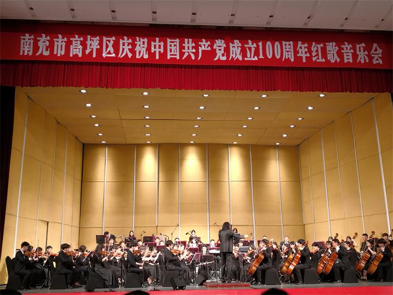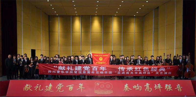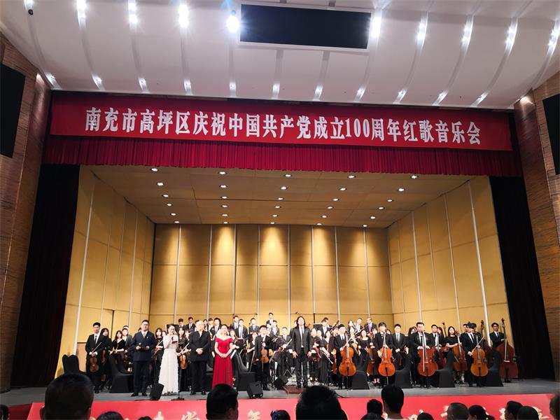 6月18日-19日,管弦系青年交响乐团70名师生走进“南充市高坪区”为当地800名党员干部群众举办了主题为“献礼建党百年 传承红色经典”交响音乐会。党总支副书记罗平、青年指挥杨瑞峰、教师党员张玥参加此次活动。