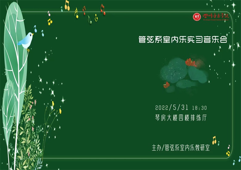 由我系室内乐教研室主办的“管弦系室内乐实习音乐会”于2022年5月31日晚在川音琴房大楼四楼排练厅举行。