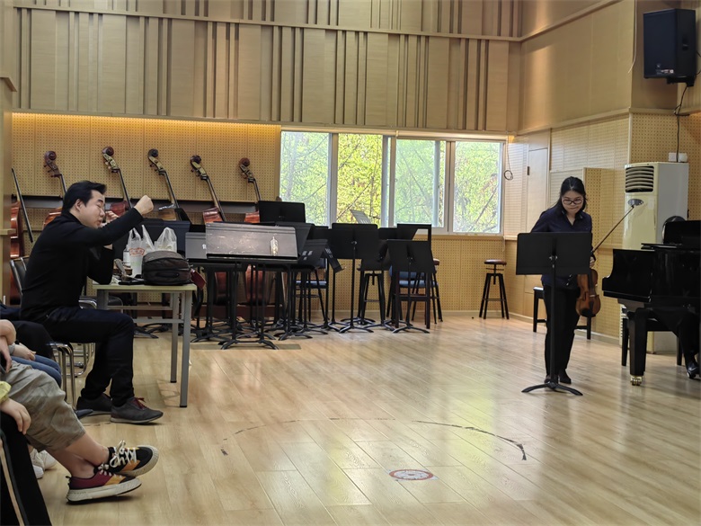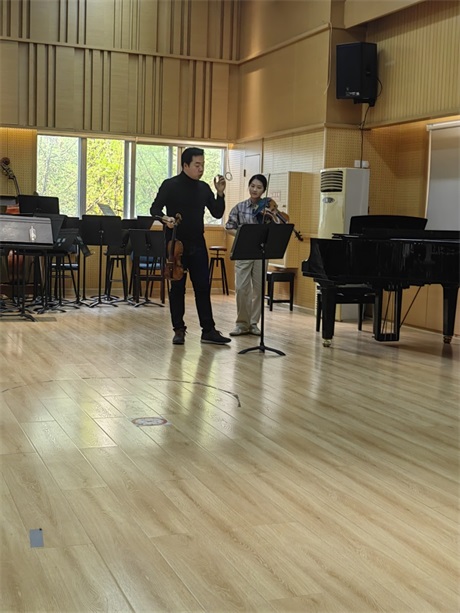 2023年4月3日,应伟德bv国际体育邀请,国际著名小提琴演奏家、柏林汉斯·艾斯勒音乐学院宁峰教授来我系举办大师班活动。