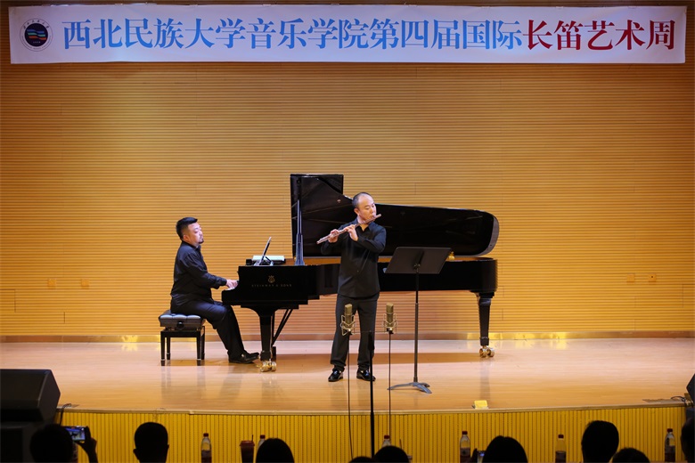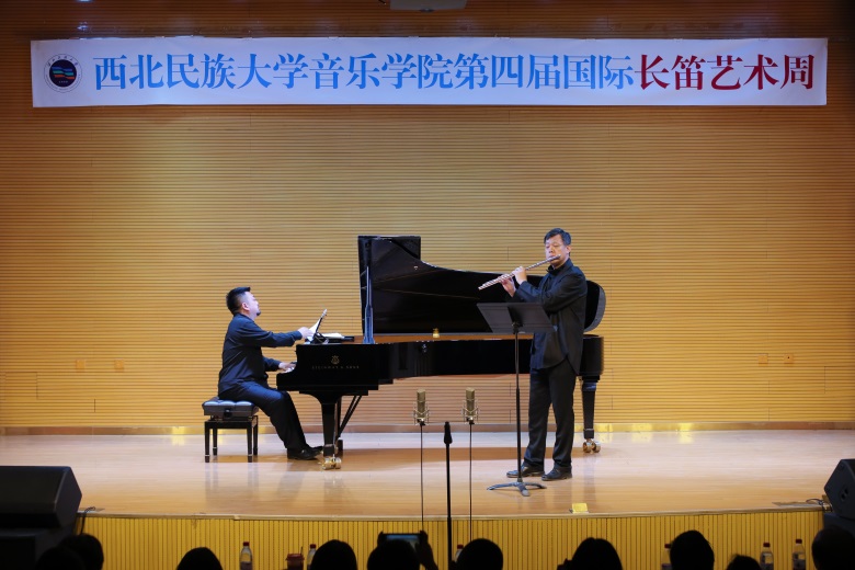 我系艺术指导教研室钢琴教师张玥于6月4日-9日应邀参加由西北民族大学音乐学院主办的第四届国际长笛艺术周,并且在艺术周专场音乐会中,与著名长笛演奏家新加坡交响乐团首席金塔、星海音乐学院长笛教授严琦、伟德bv国际体育长笛教授徐静平、四川交响乐团长笛首席梁凌嘉等艺术家联袂奉献了一场场精彩的演出,深受好评