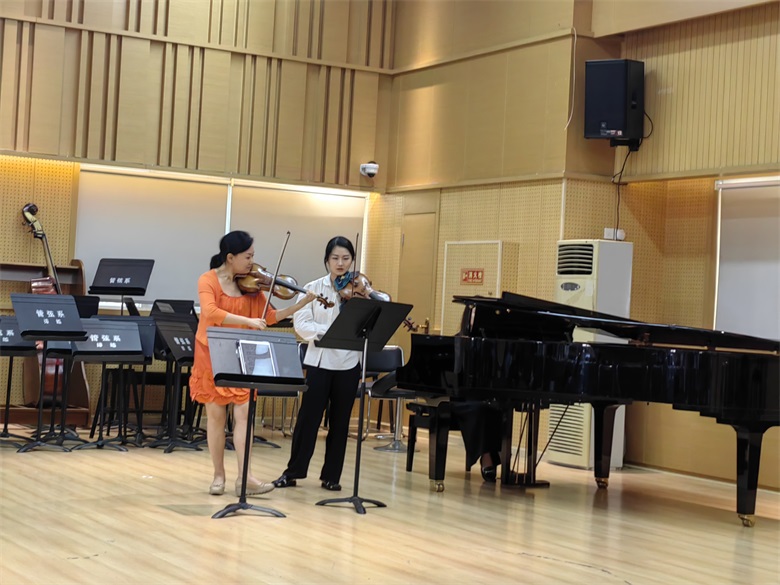2023年 6月23-24日,由川音管弦系主办、管弦系小、中提琴教研室承办的的新加坡杨秀桃音乐学院钱舟教授川音大师班在琴房大楼四楼排练厅圆满举行。钱舟教授分别对我系青年教师徐敏嘉、附中学生叶思婷、齐翘楚和本科学生王颖、胡睿涵等进行了教学指导,曲目包括维尼亚夫斯基浮士德幻想曲、帕格尼尼D大调小提琴协奏曲第一乐章、巴赫无伴奏第二组曲萨拉班德舞曲、吉格舞曲、弗雷小提琴奏鸣曲第一、二乐章、莫扎特D大调第四协奏曲第一乐章、巴赫无伴奏第一奏鸣曲柔板、帕格尼尼随想曲第二十四首等。钱舟教授对不同的乐曲风格进行了生动细致的讲解,并向每位演奏者提出了针对性的宝贵建议,使音乐在短时间内变得更加流畅鲜明,钱舟教授精彩的示范演奏也使我系师生受益匪浅,反响热烈。