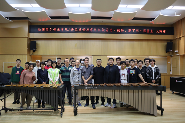 2023年10月24日周二下午2:30,来自法国的艺术家雷诺.德特给我们带来颤音琴的大师课,雷诺.德特首先和手风琴演奏家菲罗朗.瑟普查教授一起演奏了一首二重奏曲目,精彩的演奏获得了全体师生们的热烈欢迎。雷诺.德特教授的演奏以爵士音乐风格为主,对颤音琴的声音和延音踏板的使用控制非常优美和精准,尤其使用琴槌在琴键止音方面有非常高超的水平,使学生们对颤音琴的演奏有了更新的认识。雷诺.德特教授还专门系统的讲解了颤音琴的即兴演奏方法。在指导学生演奏的同时,也邀请学生一起参加进来学习即兴演奏,效果非常好。同学们的学习热情也是非常高涨,大师课取得了超预期的效果。同学们的演奏也得到了德特教授的高度评价和认可。