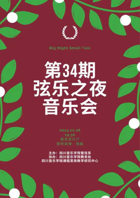第34期管弦系弦乐之夜音乐会于10月26日晚在聂耳音乐厅圆满落下帷幕。同学们奉献了精彩的演出,展示了在学期中取得的长足进步,我们下一次弦乐之夜音乐会不见不散。