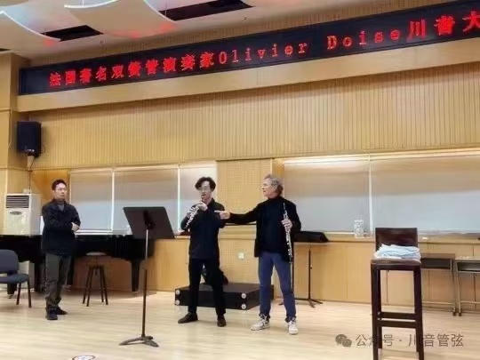 奥利弗·多瓦斯先生是一位非常优秀的乐团演奏家,同时也是杰出的世界顶级双簧管独奏家。本次大师课,Olivier Doise先生从诸如气息、音准、节奏、嘴型和乐句连贯性等各个方面给我们带来了他独到的见解,他纯正的法式演奏法以及严谨的基本功训练法都带给了师生很大的启发。