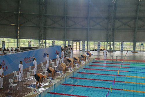 2015年四川省大学生游泳比赛于2015年6月7日在电子科技大学清水河校区游泳馆举行。本次比赛由四川省教育厅主办,电子科技大学承办,共有来自全川的8所高校,10支代表队,133名运动员参赛。本次比赛由基础部体育教研室魏乔老师担任领队,王林钧、游雨两位老师担任教练,代表队队员分别由声乐二系(2013级邓皓文)、音乐学系(2014级杨起凡、曾佳齐)、歌剧合唱系(2012级王延森)、美术学院(2012级冯颖灵、李潇潇,2013级李沂效,2014级范鹏程)、艺术管理系(2014级王雅馨)、流行音乐学院(2014级李陆平)六个系、院的10名队员组成。经过短期专业、系统的集训后,全体队员团结一致、奋力拼搏,一共获得4个冠军、3个亚军、5个第四名、6个第五名、3个第六名、2个第七名,并为我院取得甲组团体总分第三名的好成绩,在此我们向获奖同学表示祝贺,向负责此次比赛的领队和教练员表示衷心的感谢!