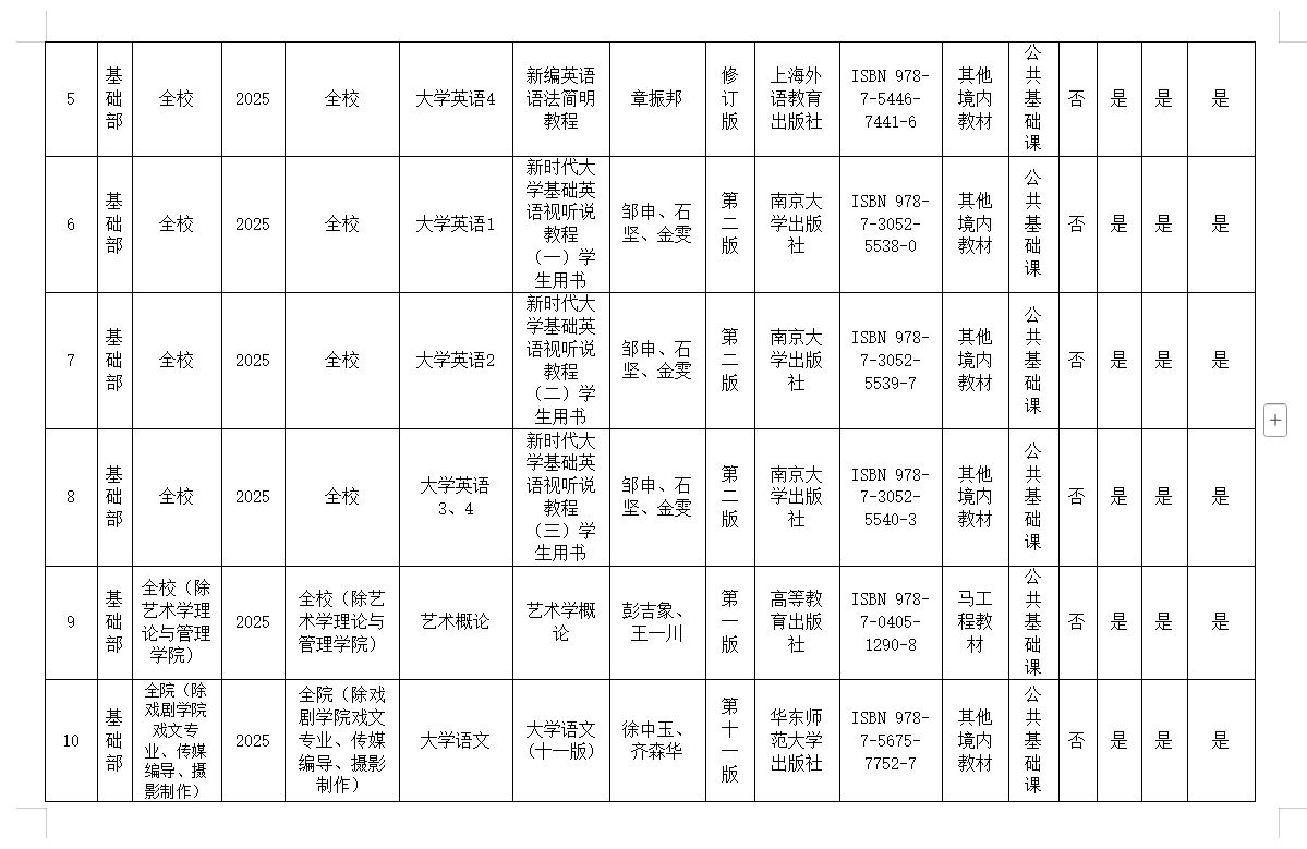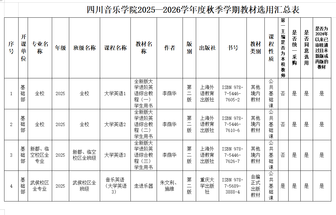 附件5:伟德bv国际体育2025—2026学年度秋季学期教材选用汇总表