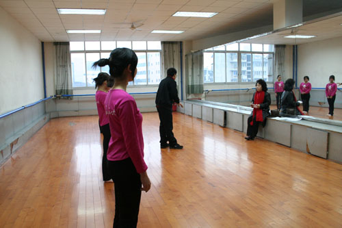 评估专家郭跃进教授来到了综合楼舞蹈二教室,考察了2007级音乐教育系女生6班的《舞蹈编排》课程。此课由青年教师郭欣阳担任主讲,徐振华担任钢琴伴奏。在舞蹈编排的基本功训练后,郭跃进教授认真查看了郭老师的教案、课程表、教学大纲等,并对上课情况做了认真记录。临近下课时,郭教授关切地询问了学生的主修专业,并对学生声乐学习进行了简单考评。