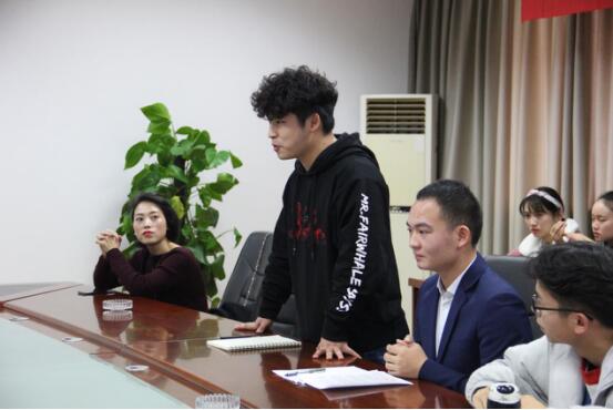 大会第一项由分团委学生会主要干部发表讲话,团委副书记杜玥男、学生会主席唐洺、分团委陈玉芩、办公室部刘孝通、学生会副主席梁田、文体部陈永虎、学生会副主席蒲明镜、生活部吴雨珊、纪检部杜晓、宣传部唐港、外联部王芹兰。他们主要讲这一年来自己参与的工作和工作经历,工作经验和自己的心得体会,鼓励学生会新成员再接再厉,学会开创发扬自己。最后甄书记对他们表示诚挚的感谢。