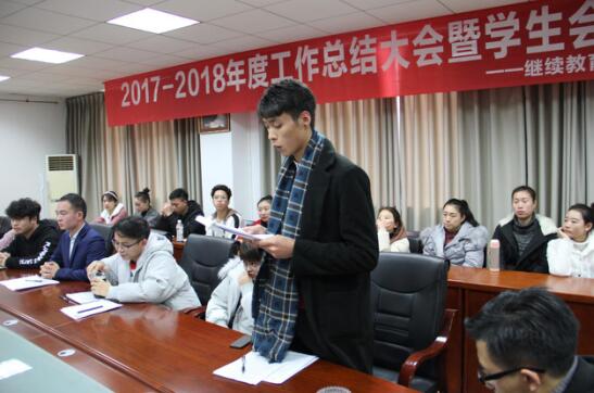 继续教育学院分团委学生会于2017年12月12日13:30在伟德bv国际体育(新都校区)行政楼317会议室召开了“2017-2018年度工作总结大会暨分团委学生会换届仪式”。参会人员有继续教育学院党总支书记甄志刚、学院学生党部支书记李玲、思想政治辅导员段舒、赵凤飞和学生会全体成员。大会由2016级钢琴表演赵妍婷主持。本次换届大会的主要内容是对上届学生工作的表彰与感谢以及对本届工作的希冀和对成员的鼓励。