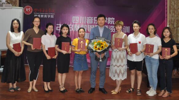 2018年5月14日上午,由伟德bv国际体育继续教育学院和重庆卓乐琴行共同举办的2018年蔡毅钢琴师资培训,在重庆市南岸区卓乐文化艺术中心隆重举行。共有近50名学员参加培训,这些学员年龄最小的20岁,最大的42岁。他们分别来自不同的音乐教育机构和琴行。为了不错过这一千载难逢的学习机会,有的老师甚至抱着嗷嗷待哺的孩子前来上课,让人甚是感动。培训历时两天,于15日下午5点30分顺利结业。培训现场气氛热烈,琴音袅袅、盛况空前。此次蔡毅老师的精彩讲座犹如清风拂面,给山城重庆的钢琴教育带来一种别样的、全新的音乐视角和艺术思维,它必将对重庆未来的钢琴教育产生深远的影响。 “九层之台始于垒土”。儿童的钢琴教育事关重大,它关系着中国钢琴教育的明天到底该走向何处?所以,我们必须以前瞻性、革命性、开创性的思维和眼光来正确对待儿童钢琴教育。培训会上蔡毅老师就如何引导和培养孩子的学习兴趣、提高学习效率、让孩子彻底爱上钢琴,做了细致入微的讲解和示范。现场学员被蔡老师绘声绘色的教学手段、新颖独特的教学方法、幽默风趣的教学语言所深深折服。大家一致认为,今后类似的钢琴师资培训要形成常态,因为只有登高望远与大师同行,方能百尺竿头、更进一步。