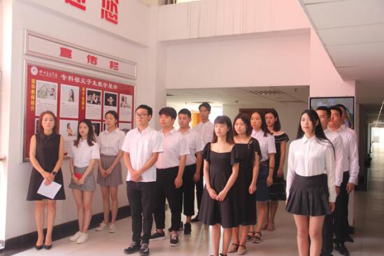 继续教育学院学生党支部于2018年6月6日上午10:00分,在伟德bv国际体育(新都校区)二教8楼中庭举行了“毕业生党员带领新党员重温入党宣誓仪式”。本次活动由学生党支部书记李玲老师主持。第72、73、74、75、76期入党积极分子没课的全部参加,在旁边观看。