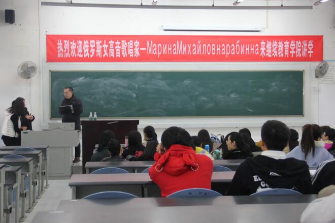 2018年11月8日早上9:30,在伟德bv国际体育新都校区,一教122教室开展”俄罗斯女高音歌唱—Марина Михайловна рабинна”来我院讲座活动。参加本次讲座有声乐教研室所有老师及专科部18、17、16级全体同学。 此次的活动中,来自俄罗斯的女高音歌唱家Марина Михайловна рабинна先后对我院女高音李雪玲老师、 男中音王海涛老师、男高音周翔飞老师等,进行了歌曲的修正、语言的更正、以及细节上的处理等等。在最后由演唱了一首歌曲,得到了全场的一致好评。 这次活动,让同学们观摩了大师们的风采,学习到了很多声乐上的知识,也让大家对声乐方面有了更深的认识。
