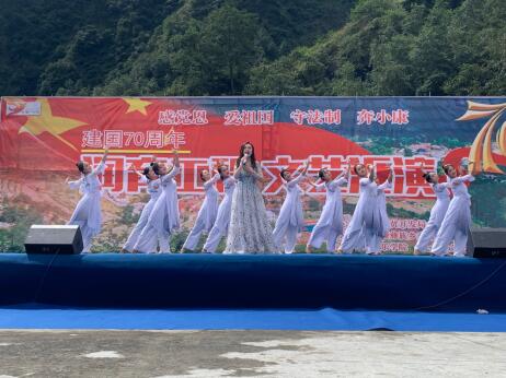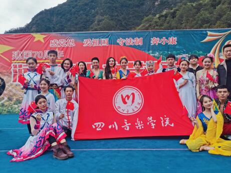 继续教育学院接到学院党办任务,将于2019年9月24、25、26日赴甘孜州九龙县进行扶贫慰问演出。我院组建了由方潇梅丶张鹤婷两位带队老师,两位带队学生干部和2017级舞蹈2丶3班15名同学,共19人的演出队伍,于9月24日早9:00在新都校区第二教学楼小音乐厅外集合出发。经过12个多小时的车程,于晚上21:30到达预定酒店。为了确保第二天的演出顺利进行,老师和同学们还是在积极组织了节目排练。环境虽然艰苦但是大家的热情依然不减。 9月25日早晨,演出队伍于8:00坐上大巴,迎着凉山早晨初升的太阳,在2小时车程后到达目的地三垭彝族乡。 演出即将开始,大家积极的准备演出的舞蹈和服装,空隙中大家还不忘和当地的村民们互动,我们队伍中的彝族同学更是与他们相谈甚欢。当地的村民热情好客,对我们的疑问都耐心的解答。11:00点,演出开始,由于演出节目较多,老师们同学们的节目应接不暇,在当地村民和彝区歌手演唱的间隙,大家积极紧张的准备下一个节目。当地的村名热情好客,小朋友更是天真,质朴,纯真中带着一丝羞涩。看着我们每一个节目准备的细节。在节目最后,全场大合唱“我和我的祖国”看着每一个人手中挥动的小红旗和真诚炽热的眼神,仿佛能够看到每一位彝族人民的热爱于渴望。演出结束,我们一起合影留念,记录下这短暂而美好的画面。最后,我们的队伍一起坐上大巴,踏上归途。