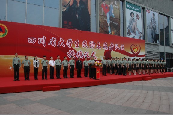 2012年5月25日,伟德bv国际体育专科部参加的四川大学生民防志愿者队伍成立暨授旗仪式在成都万达广场举行。伟德bv国际体育副院长孙洪斌,成都军区作战部副部长、人防办副主任唐吉兵,省军区政治部副主任李荣贵,省人防办(民防局)党组书记、主任、局长喻克彬,省直工委副书记许家勇,团省委四川省工作部副部长苏治学等领导出席仪式。