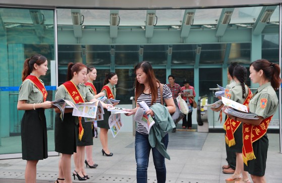 上午10时许,穿着统一制服的大学生民防志愿者们精神抖擞,昂首阔步来到天府广场,来到天府广场的各个角落、地铁站出入口为来往群众发放《民防之窗》、《四川人防》和火灾、自然灾害、居家生活等各类应急知识手册。此外,志愿者们还结合“9•18”这个特殊的日子耐心细致为群众讲解人防(民防)的由来、发展历程、职能和作用,对照着应急知识手册讲解为群众讲解个人防灾救灾技能和应急自救办法。当日,还有许多外地游客主动向志愿者索要宣传材料,对四川人防依靠群众志愿者既能推广人防(民防)又能帮助群众增强国防、防灾救灾意识的做法十分陈赞。在不到一个小时的时间里,志愿者们共计发放了500百多本人防(民防)杂志和1000多本应急知识手册。