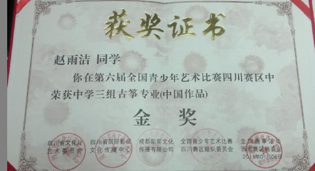 专科部10级音乐表演专业学生赵雨洁参加全国青少年艺术比赛荣获佳绩