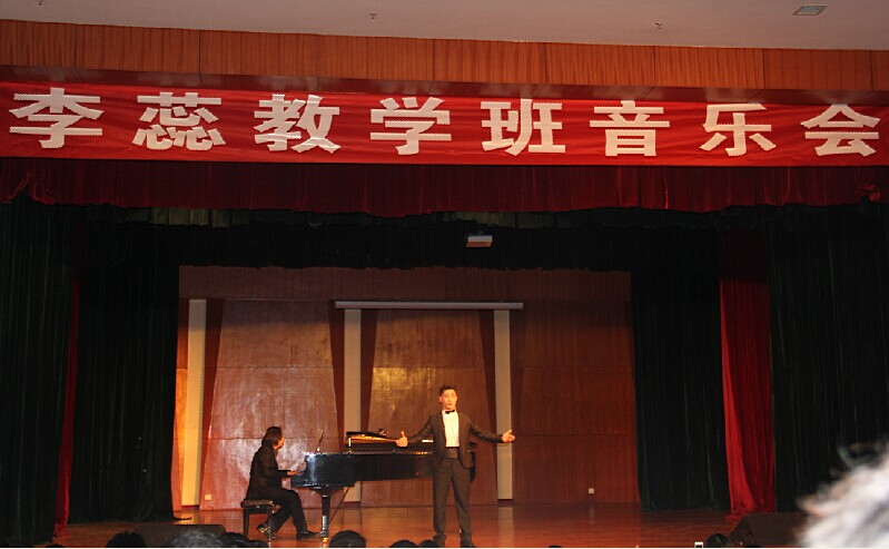 李蕊教学班音乐会 2014年12月17日(周三)晚上19:00在伟德bv国际体育演艺厅成功的举行了李蕊教学班音乐会,此次音乐会是由伟德bv国际体育继续教育学院主办,伟德bv国际体育继续教育学院常务副院长姚春城、继续教育学院党总支书记甄志刚和系上老师们都莅临现场,各位同学也准时到场,台下几乎座无虚席,大家都认真的观看着舞台上同学们的精彩表演。音乐会以诙谐幽默的《猫之歌》拉开了序幕,接着是李臣杰演唱的《我爱你,中国》那铿锵有力的歌词激起了同学们的爱国情怀,紧接着是由王建清高亢的嗓音演绎了《天边》他深情的演唱博得了在场同学的阵阵掌声,使整场音乐会逐渐沸腾起来。梁圣玉同学所演唱《巴黎圣母院的敲钟人》歌曲开头就引人入胜,她舞台形象明媚大方,博得了同学们的青睐。余槿华给我们带来的《胜利啊胜利》她以娴熟的歌唱技巧、美妙的嗓音,让我们的心灵在美妙的歌声中得到了升华,随后何静演唱了《放风筝》她以清新的民族唱腔韵味十足的唱出了作品中体现的情与感。随后音乐会接近尾声,参加音乐会的全体同学一起合唱了《西班牙女郎》彻底打动了台下所有观众,同学们一起卖力表演男女合唱歌声美妙至极,在欢快的歌声中使音乐会进入最高潮,在现场热烈的掌声与欢呼声中此次音乐会落下帷幕,观看本次音乐会,给我们带来了一次心灵的艺术享受。整场音乐会在各位同学的精彩演中完美谢幕。