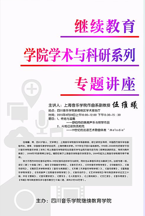 我系邀请上海音乐学院音乐学系副教授、硕士研究生导师,中国西方音乐学会副秘书长、理事,中国音乐美学学会会员,上海市曙光学者伍维曦来我院讲课